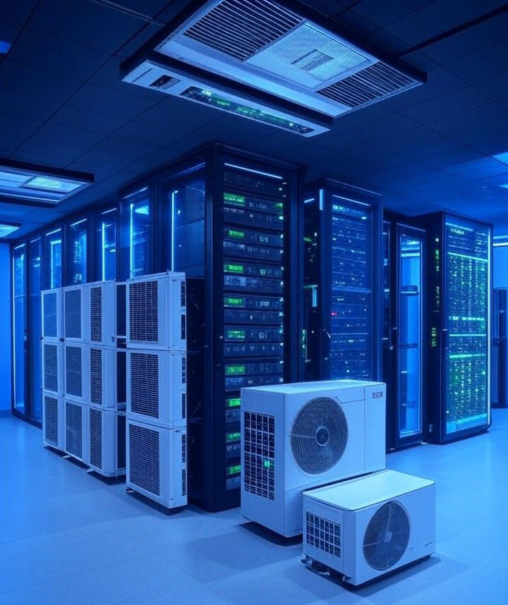 Veri merkezleri, IT ve server odalarınız için kesintisiz soğutma çözümleri sunuyoruz. Hassas klima sistemlerimiz, sıcaklık ve nem kontrolünü sürekli sağlayarak cihazlarınızın güvenli ve verimli çalışmasını garanti eder.